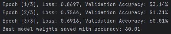 print(f"Best model weights saved with accuracy: {best_accuracy:.2f}")